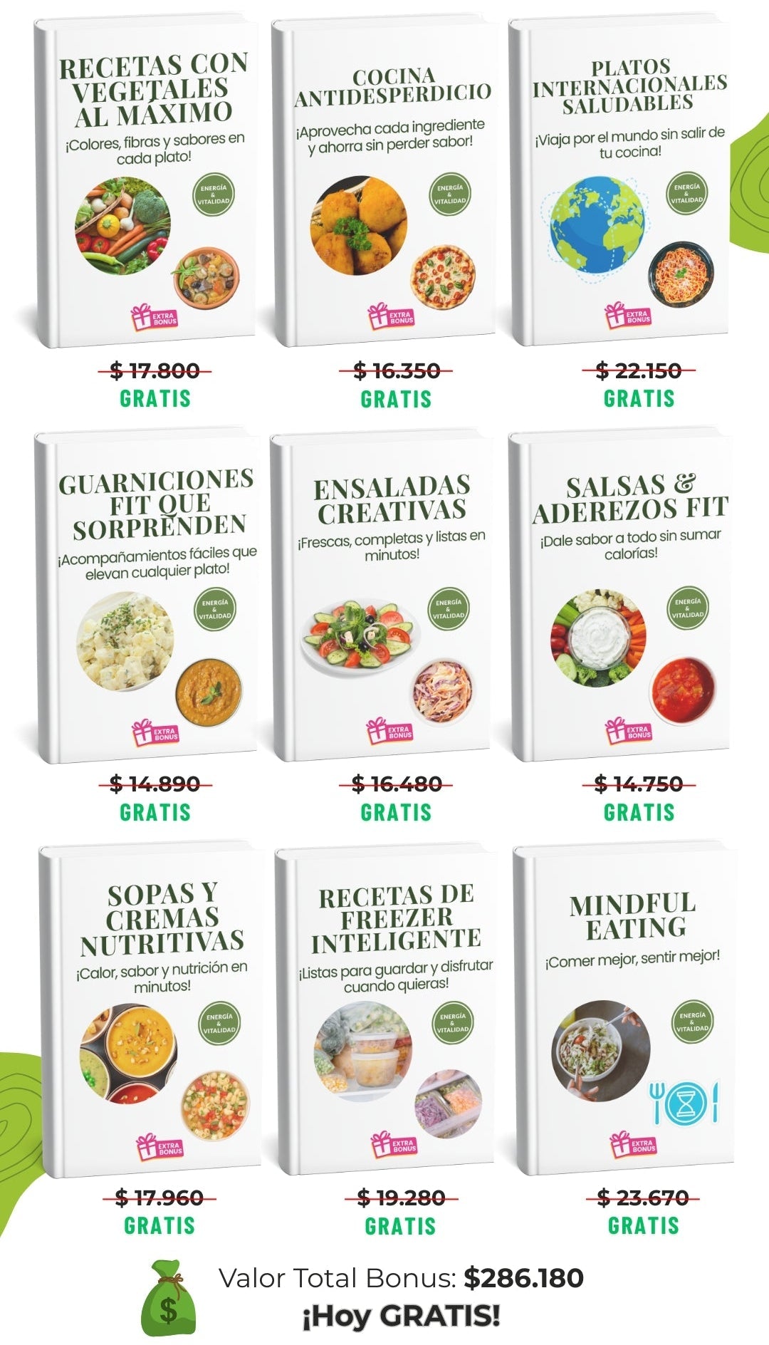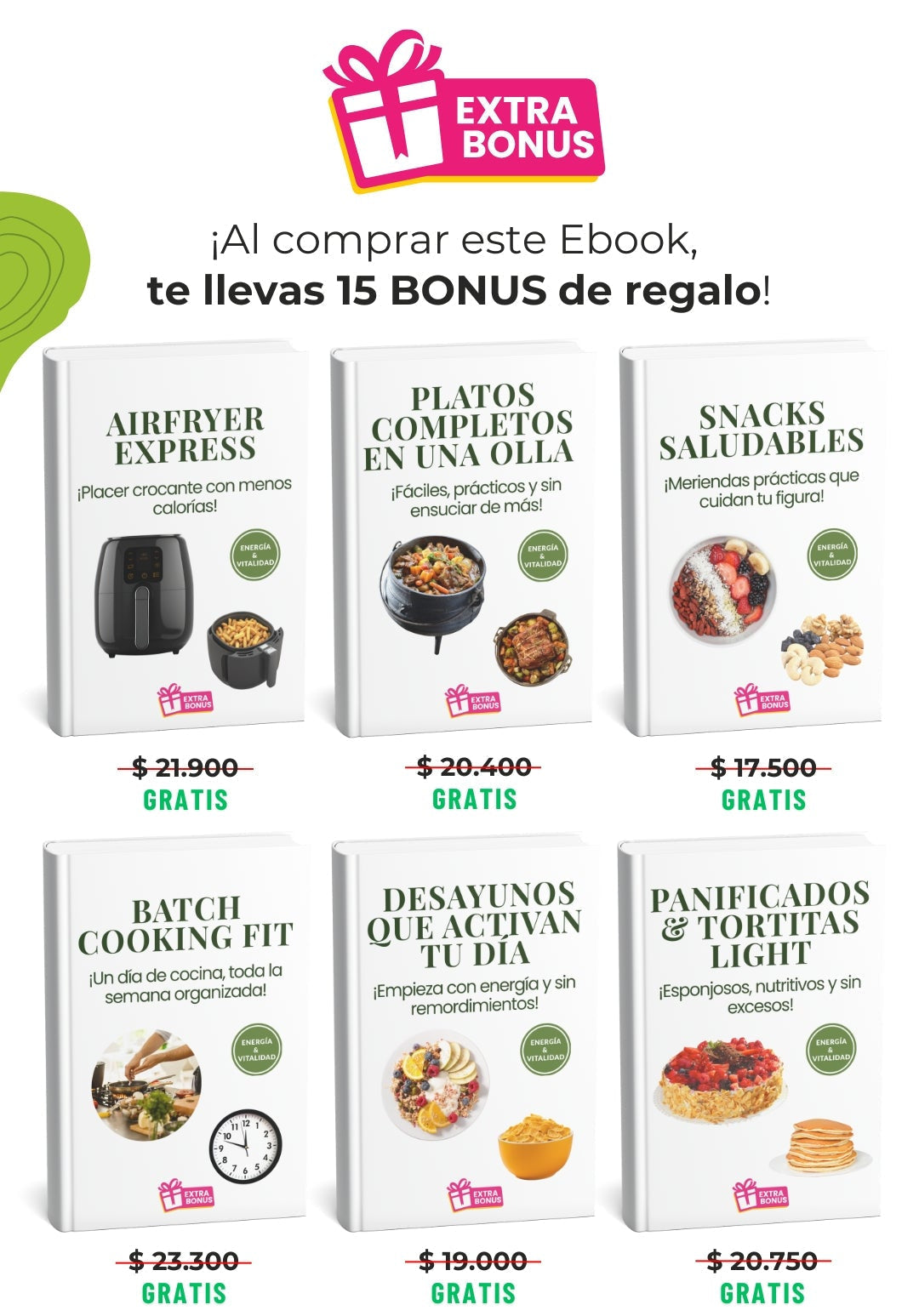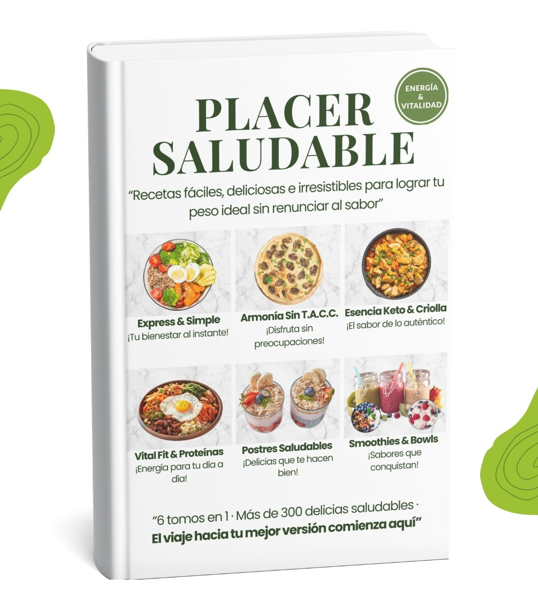 El ebook principal reúne 6 tomos en 1, con más de 300 recetas deliciosas y saludables para transformar tus hábitos: